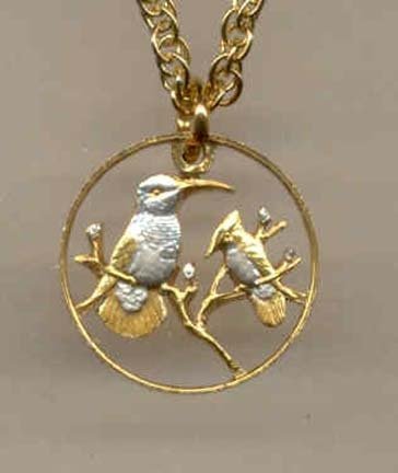 British Virgin Island 1 Cent "Green Throated Caribbean and Antillean Crested Hummingbird" Two Tone Coin Cut Out with 18" Chain from J & J Coin Jewelry Product Description: