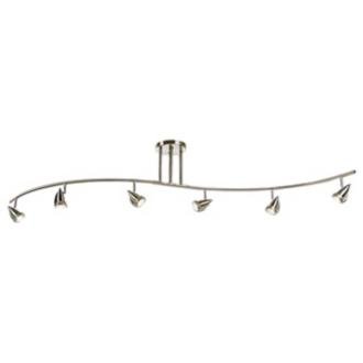 Brushed steel finish. Great for home theater use. From Pro Track. Includes six 50 watt halogen bulbs. 72" long. Extends 14" from the ceiling.