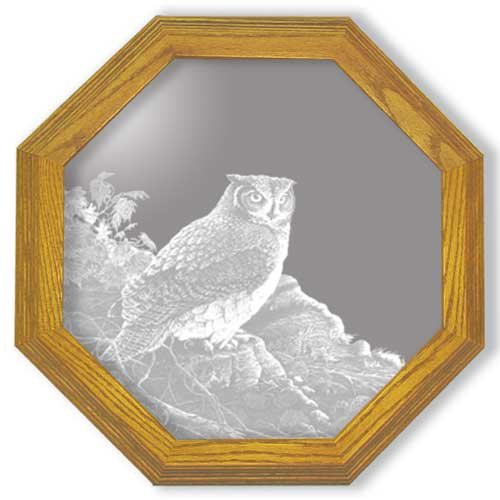 Decorative Framed Mirror Wall Decor With Great Horned Owl Etched Mirror - Great Horned Owl Decor - Unique Great Horned Owl Gift Ideas - Ready To Hang - 28" octagon Product Description: